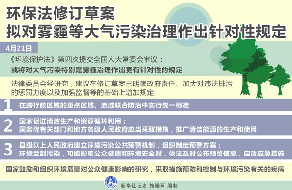 图表:环保法修订草案拟对雾霾等大气污染治理作出针对性规定 新华社记者 施鳗珂 编制
