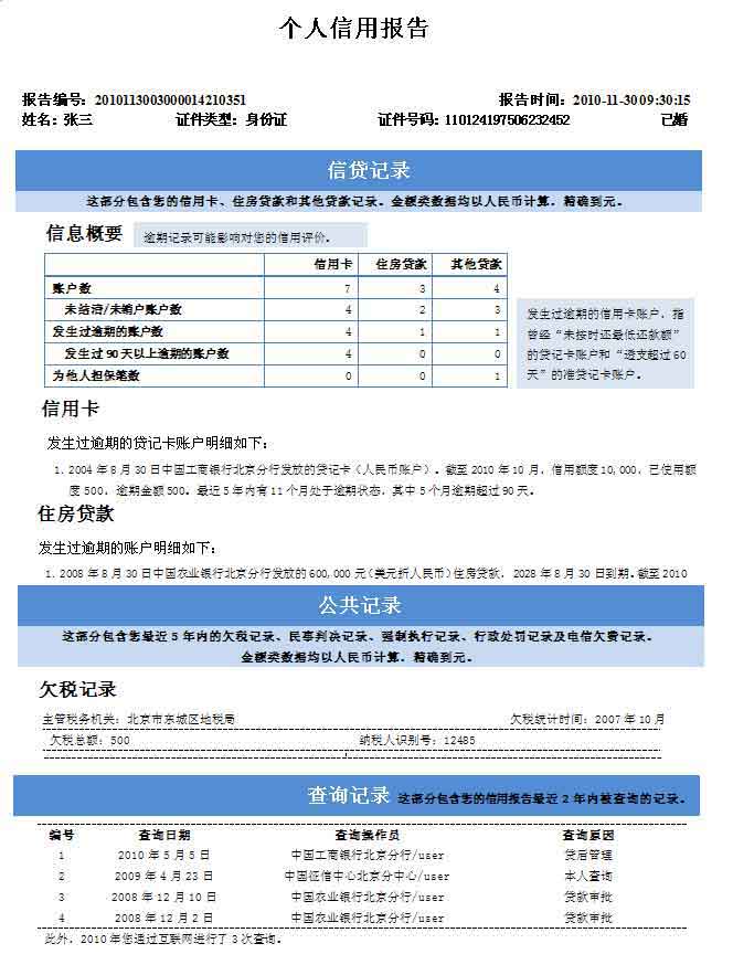 据了解,个人信用信息是指个人在其社会活动中所产生的、与信用行为有关的记录,以及有关评价其信用价值的各项信息,主要包括个人基本信息、信贷记录、公共信息记录等。通过中国人民银行征信中心个人信用信息服务平台查询个人信用报告,可看到本人最近5年内的个人信用卡、住房贷款、逾期明细,以及欠税记录、民事判决记录、电信欠费记录等详细信息。