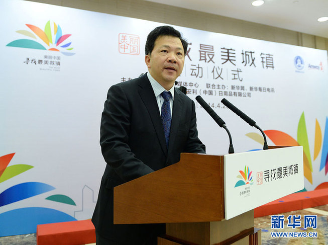 4月23日,新华社党组成员、副总编辑慎海雄在活动启动仪式上致辞。当日,新华社“美丽中国·寻找最美城镇”大型新媒体报道活动在京启动。活动将通过实地调研采访与主题论坛相结合的方式,展示我国近年来城镇化进程中的最美风景线。这项大型新媒体报道活动,由新华社新媒体中心发起并主办,新华网、新华每日电讯联合主办,安利(中国)日用品有限公司全程支持。活动依托新华社全媒体优势,借助网络、微博、微信、客户端等新媒体传播方式,通过开展“美丽中国·随手拍家乡”等线上主题活动,邀请全国网民共同参与寻找、发现中国城镇之美。新华社发(李方宇 摄)