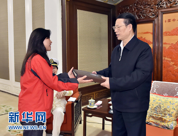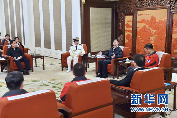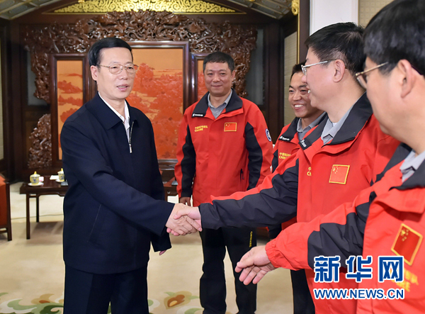 4月24日,中共中央政治局常委、国务院副总理张高丽在北京中南海紫光阁与第30次南极考察队员座谈。 新华社记者 李涛 摄