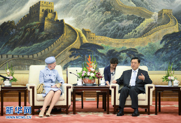张德江表示,女王陛下长期以来为推动中丹友好交流与合作作出重要贡献。此次访华期间,习近平主席与陛下就新形势下发展中丹关系达成重要共识,对推进两国关系持续健康发展将产生重大而深远的影响。中方愿与丹方共同努力,积极落实两国元首达成的广泛共识,推动中丹全面战略伙伴关系不断向前发展。中国全国人大及其常委会在民主法治建设中担负着重要责任。我们愿加强与丹麦议会的交流合作,在立法、治国理政等方面开展互学互鉴,服务各自国家建设。