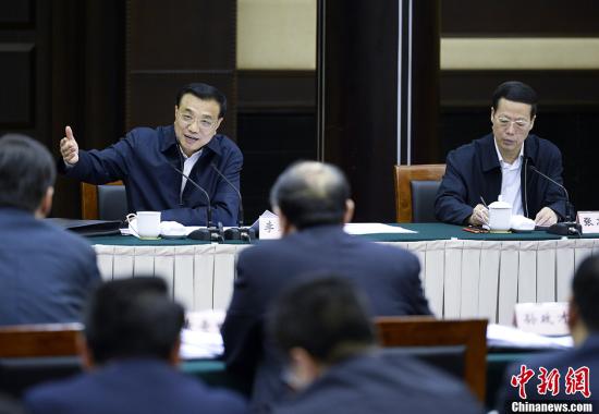 4月28日,中共中央政治局常委、国务院总理李克强在重庆主持召开座谈会,研究依托黄金水道,建设长江经济带,为中国经济持续发展提供重要支撑。中共中央政治局常委、国务院副总理张高丽出席。会上,国家发改委负责人汇报了长江经济带建设总体考虑和相关规划。上海、江苏、浙江、安徽、江西、湖北、湖南、四川、重庆、云南、贵州等11个长江经济带覆盖省(市)政府主要负责人汇报了对建设长江经济带的思考和建议。中新社发 刘震 摄