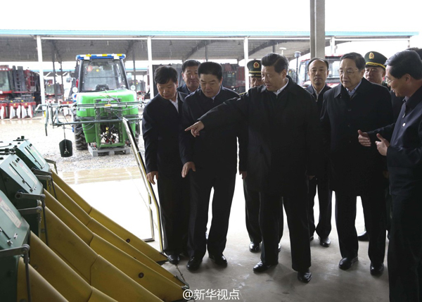 习近平29日上午冒雨来到新疆生产建设兵团银丰现代农业装备股份有限公司。棚子里,一台台农业机械整齐停放。在一台精密播种机前,听说只有中专学历的研制者陈学庚刚当选工程院院士,总书记说,英雄不问出处,谁是英雄,要在“战场”上见分晓。
