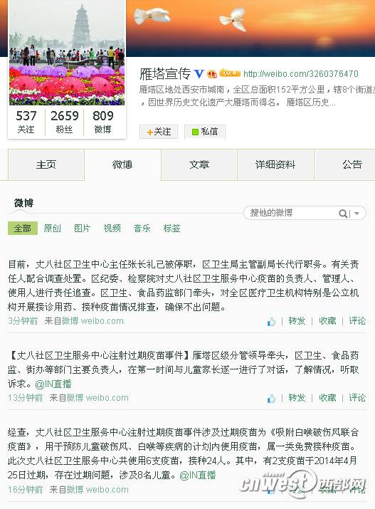 中共西安市雁塔区委外宣办官方微博截图。
