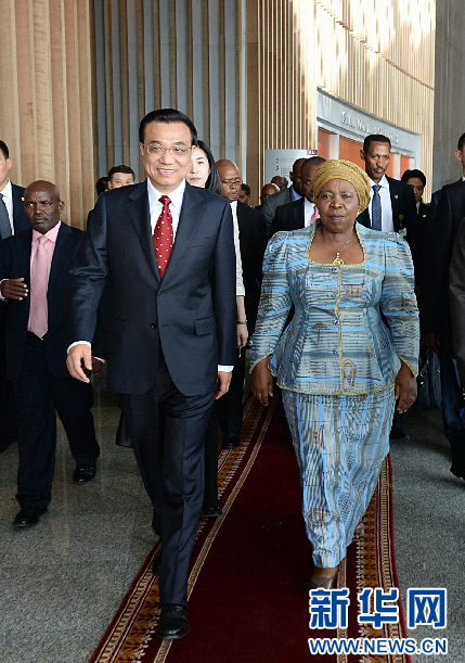 5月5日,国务院总理李克强在亚的斯亚贝巴非洲联盟总部会见非盟委员会主席祖马。 新华社记者李涛摄