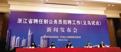2013年12月10日,义乌召开浙江省聘任制公务员招聘工作(义乌试点)新闻发布会。首次面向全国高薪招聘6名聘任制公务员。中新社发