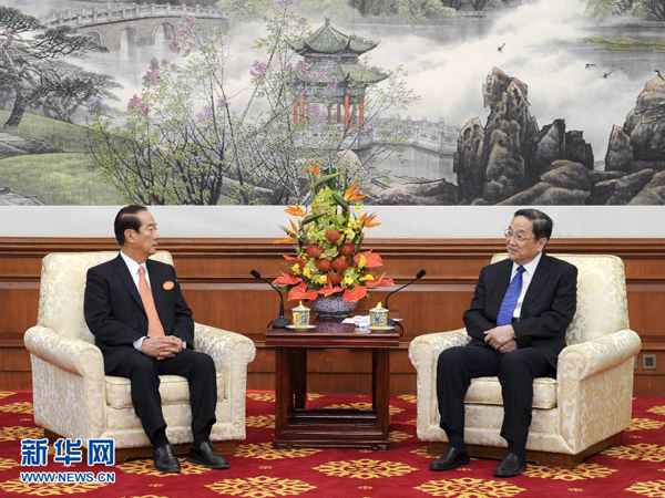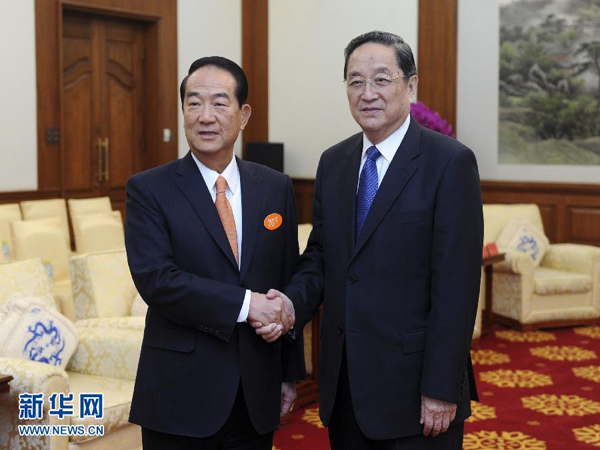 新华网北京5月7日电(记者 赵博)中共中央政治局常委、全国政协主席俞正声5月7日下午在北京钓鱼台国宾馆会见了亲民党主席宋楚瑜一行。