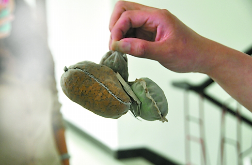犯罪嫌疑人制作的吸金纱袋。沙区警方供图