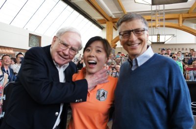 原标题:华裔女孩再与巴菲特盖茨对战乒乓 遭股神掐脖(图)