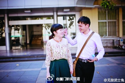 博主“无敌武士兔”告诉记者,照片里的这对新人,新娘是福州人,新郎是江西人,当天他担任这对新人的婚礼摄影师。据他介绍,婚礼于上月12日举行,刚好撞上新娘的考研复试(第二轮笔试),新娘中午化完妆,举行了婚礼仪式,下午就赶去考点,参加了考试。新娘在新郎陪伴下赶考的一幕幕,被“无敌武士兔”用镜头记录下。其中一张照片里,新郎坐在考场外,正在啃面包。“无敌武士兔”说,为送新娘赶考,新郎顾不上吃午餐,将新娘送入考场后,就在考场外,就着一瓶矿泉水吃了点面包。