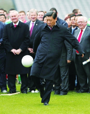 2012年习近平访问爱尔兰期间拿起足球一展身手