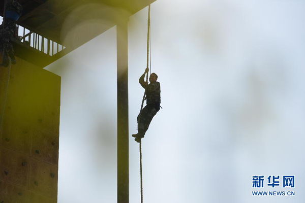 他们拥有过硬的攀登越障技能以及临危不乱的心理素质,可以在几十米高的绳索上快速攀降,速度惊人。在反恐处突的战场上,这些警营“蜘蛛侠”担负着高空侦察、多点突击的任务。他们用敏捷的身手,捍卫着正义的尊严。新华社发(李科 摄)