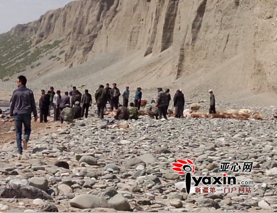 他赶紧用鞭子驱赶羊群离开山崖边后,给大哥努尔多拉打电话。兄弟俩跑到山崖下的沙石滩上一看,都傻眼了。等缓过神后,赶紧给家里人打电话,让到现场来帮忙。