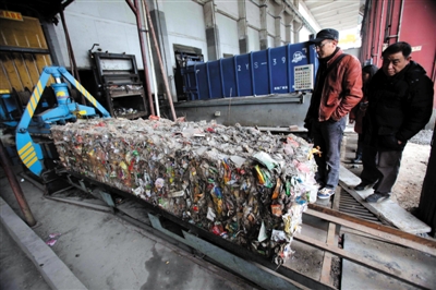 2010年3月19日,北京,阿苏卫垃圾焚烧厂周边居民代表“驴屎蛋”参观马家楼分选转运站。新京报记者 王贵彬 摄