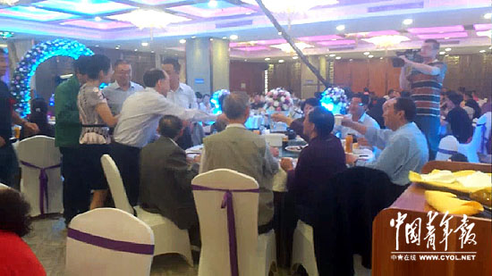 中国青年报记者在现场看到,18时许,程志新在大厅扶梯前迎接客人,多位客人称其“领导”并打招呼“领导好”、“恭喜领导”。程请他们先上二层的宴会厅。