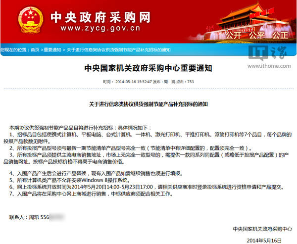 在中国市场,微软还面临更大的困难:中央机关采购计算机不允许安装Win8系统。这是来自中央国家机关政府采购中心的一份通知: