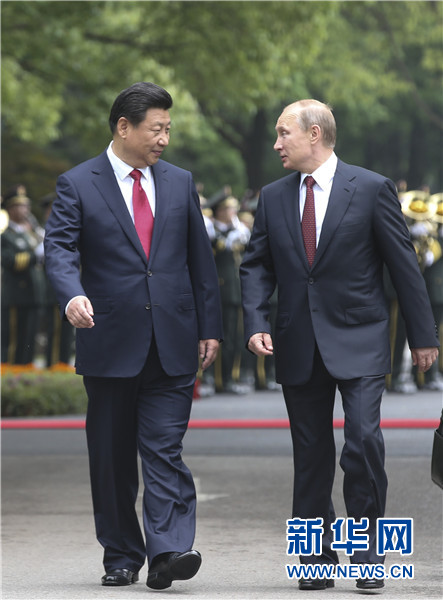 普京表示,我同习近平主席的会谈是友好和建设性的,我们共同确定了两国关系发展宏伟目标。双方签署的一系列合作文件非常重要。俄方愿同中方共同搞好下阶段两国一系列重要交往和活动,深化各领域合作,积极推进战略性大项目,共同庆祝世界反法西斯战争暨中国人民抗日战争胜利70周年。我期待着应习近平主席邀请今年来华出席亚太经合组织领导人非正式会议。