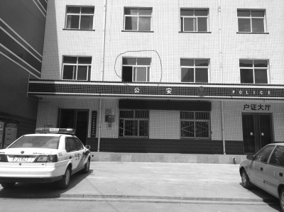 事发时曹军所在办公区二楼窗口(画圈处)。除署名外京华时报记者张剑摄
