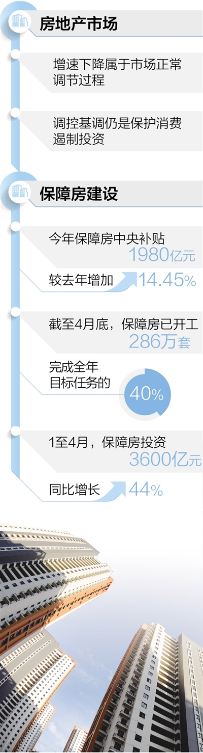 冯俊介绍,今年中央财政预算安排城镇保障性安居工程补助资金1980亿元,较去年实际下达数增加250亿元,增加14.45%。截至4月底,已开工286万套(其中各类棚户区184万套),基本建成125万套,分别占全年目标任务的40%和25%,与去年同期基本持平。1到4月份,完成保障性安居工程投资3600亿元,比去年同期多1100亿元,同比增长44%。