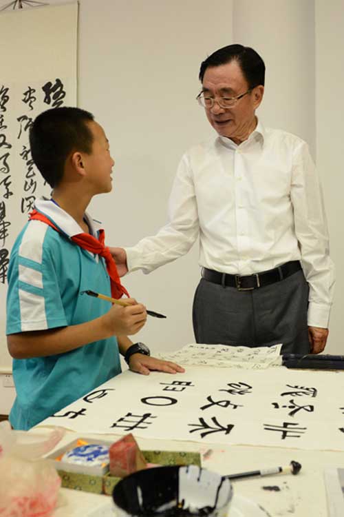 贺国强先后到了明伦堂、礼仪广场、大成殿、大成门、儒学馆、六艺学宫、乡贤祠、阳明祠、奎文阁等场所,兴致勃勃地观看了学生们展示的中华礼仪和书画技艺,称赞孔学堂开展丰富多彩的弘扬优秀传统文化活动。