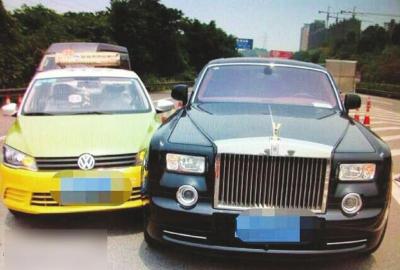 原标题:出租“不听话”硬是擦伤劳斯莱斯幻影