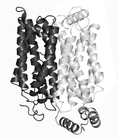 人源葡萄糖转运蛋白GLUT1的结构模型。