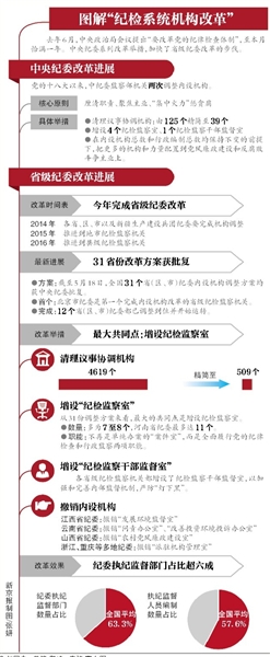 中纪委副书记陈文清曾介绍,这次改革聚焦反腐主业,“纪检监察室总数由8个增至12个;新设纪检监察干部监督室,及时把‘害群之马’清理出去”。