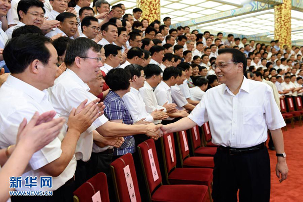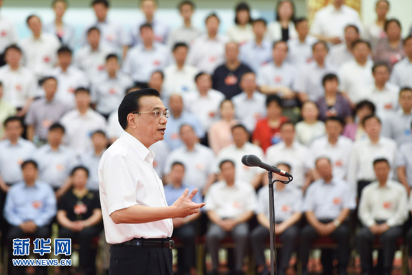 6月23日至24日,全国职业教育工作会议在北京召开。中共中央政治局常委、国务院总理李克强在会前接见与会全体代表并讲话。(新华社记者 李学仁 摄)
