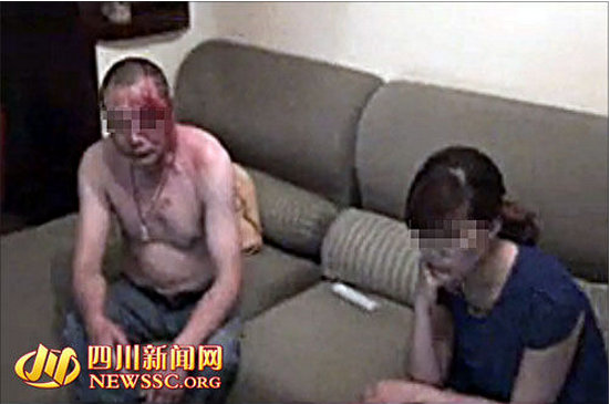 据网上发布的一段1分7秒的视频显示,有两名男子将一名中年男子按倒在沙发上,同时视频中传出呵斥辱骂该中年男子的人声。中年男子表示,可以提要求,并愿意出钱解决。另一段2分57秒的视频显示,一名中年男子瘫软在沙发上,眼睛被打肿,周边都是血迹。一名女子坐在男子旁边,低着头不说话。