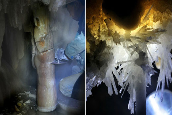 洞穴绵延近200米。在洞穴深处,一名工人正用大锤使劲敲打一颗长约1米的石柱,锤子突然断裂,随后他换了撬棍和另一名工人从石柱下方挖。