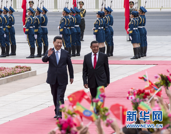 7月9日,国家主席习近平在北京人民大会堂同埃塞俄比亚总统穆拉图举行会谈。会谈前,习近平在东门外广场为穆拉图举行欢迎仪式。 新华社记者王晔 摄