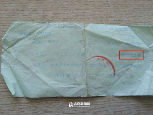 最美烟台女孩捐款押金条