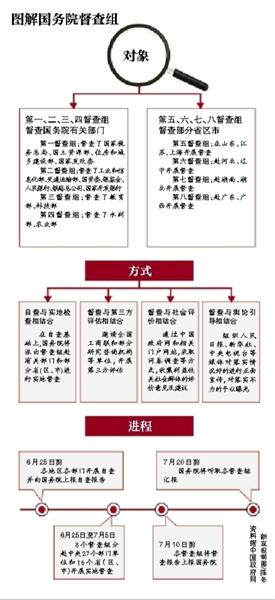 从5月30日做出决定,到6月25日至7月5日,8个督查组分赴中央27个部门单位和16个省(区、市)开展实地督查,再到7月10日前,各督查组将督查报告上报国务院,督查工作已经完成大半,此次国务院全面督查的整个工作流程逐步清晰。