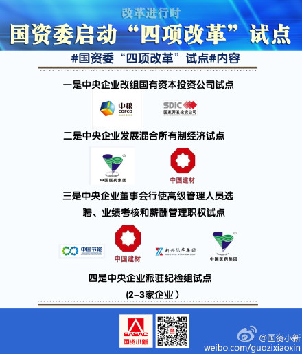 三是中央企业董事会行使高级管理人员选聘、业绩考核和薪酬管理职权试点。中国节能环保集团、中国建材、新兴际华集团和中国医药集团4家入围。