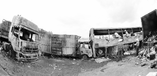7月19日上午8时,车祸现场的大火才被扑灭。