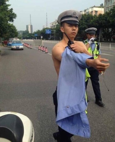 据了解,7月18日下午,德阳一网友发微博称,德阳交警二大队一位民警“好凶”,“口口声声说老子脱了衣服给你打,不要工作了。”该网友同时上传了几张照片,照片中一位年轻交警脱下装备和警服,赤裸上身。该微博发出后,除了事件本身引发关注,更有不少网友被图中交警帅气的长相和一副好身材所吸引,直呼“交警好帅”。