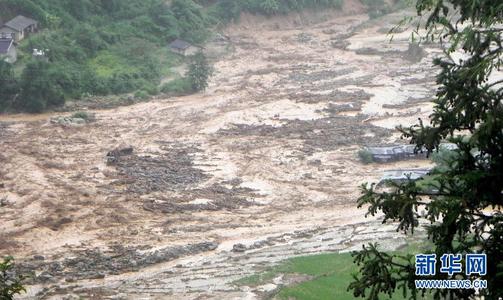 记者在现场看到,突然而至的泥石流把户娜村一分为二,中间的13户房屋被泥石流夷为平地,房梁、石头夹杂着瓦砾横七竖八地躺在泥水地上,一棵棵从山上冲下来的树木也被泥石流剥了皮。村里的道路成了泥石流肆虐的河道,一些依然矗立的房屋里到处是泥浆。