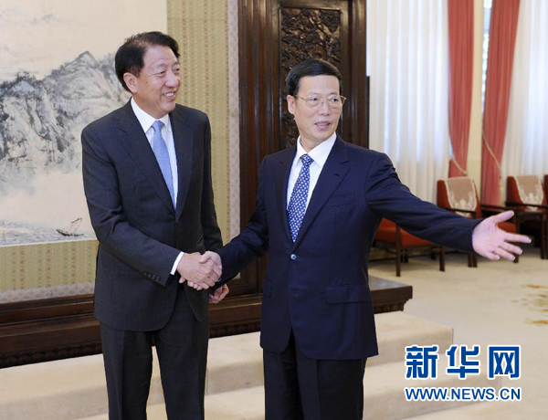 中共中央政治局常委、国务院副总理张高丽在北京中南海紫光阁会见来华出席第二届中新社会治理高层论坛的新加坡副总理兼国家安全统筹部长及内政部长张志贤。新华社记者 张铎 摄