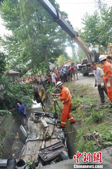 中新网成都8月3日电 (穆旭 谭成林)3日,四川德阳绵竹市广济镇新河村1组境内发生一起交通事故,一辆桑塔纳小轿车坠入路边水渠内,导致车上6人遇难。
