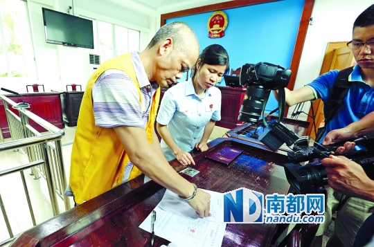 判决结束后,陈柏和在一审判决书上签字画押。南方日报图