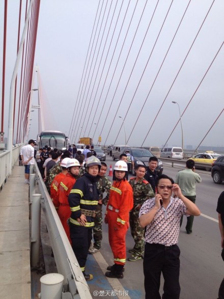 楚天都市报:【武汉一长途客车遭劫持】今天下午, 武汉市白沙洲大桥上发生一起劫持案,一男子持刀劫持一辆从武汉开往仙桃车牌号为鄂AF1127的大巴。目击者称,劫持者用刀架住司机脖子,司机浑身是血,车上坐满乘客。目前,大巴正停靠在白沙洲大桥桥面,警察和谈判专家已赶到现场。