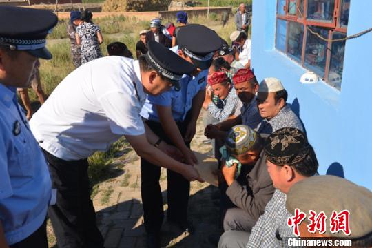 塔城地区公安局党委班子来到额玛勒郭楞乡慰问木哈买提巴依·革命汉家属。 丁飞摄