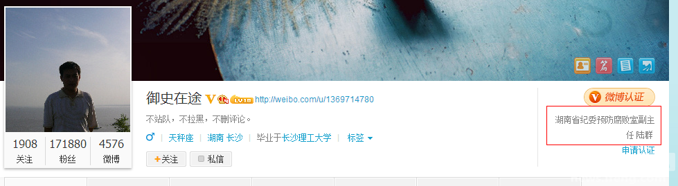 湖南纪委预防腐败室副主任陆群微博