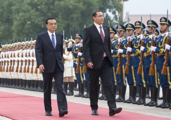 新华网北京9月1日电(记者 郝亚琳、侯丽军) 1日下午,国务院总理李克强在人民大会堂东门外广场举行仪式,欢迎罗马尼亚总理蓬塔访华。