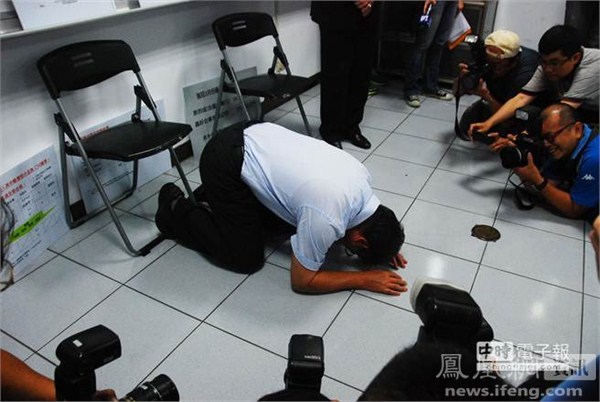受地沟油案冲击,台湾强冠公司董事长叶文祥昨日在记者会上,两度下跪道歉。叶文祥除道歉外,也倾诉冤情。