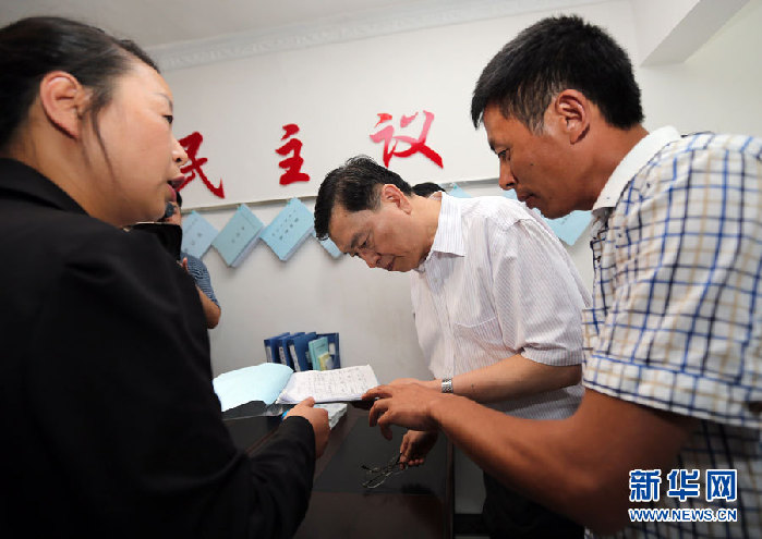 9月10日至12日,中共中央政治局常委、全国人大常委会委员长张德江在贵州调研,并召开人大工作座谈会。他强调,坚持好、完善好、发展好人民代表大会制度,是全国人大和地方各级人大的共同使命、共同责任。这是9月10日,张德江来到毕节双堰村村委会村民小组,仔细观看村小组日常工作记录,了解情况。 新华社记者刘卫兵摄