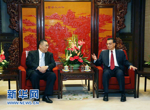 9月22日,国务院总理李克强在北京中南海紫光阁会见来京接受任命的澳门特别行政区行政长官崔世安。 新华社记者刘卫兵摄