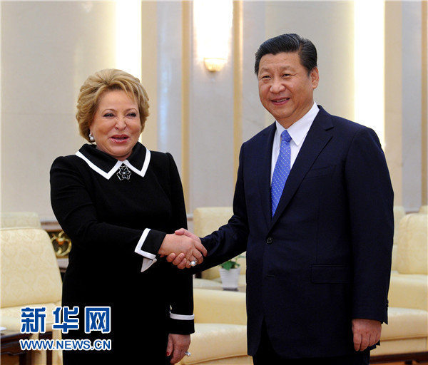 9月23日,国家主席习近平在北京人民大会堂会见俄罗斯联邦委员会主席马特维延科。 新华社记者 饶爱民 摄