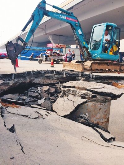 “不进行综合探查,说不定周边还会塌坑。”围观市民说。