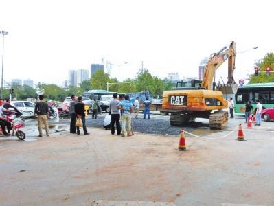 因塌塌不休提前半小时上班仍被新坑堵在路上